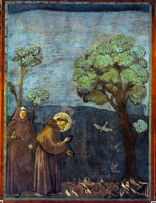 Saint François d'Assise prêchant aux oiseaux , Giotto di Bondone